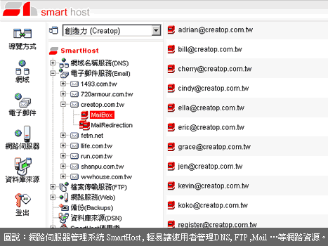 創造力 Creatop 投入大量的人力與時間,開發重量級的網路虛擬主機的管理系統,SmartHost  讓一般企業具備可以輕易管理網站伺器的一切成功條件。